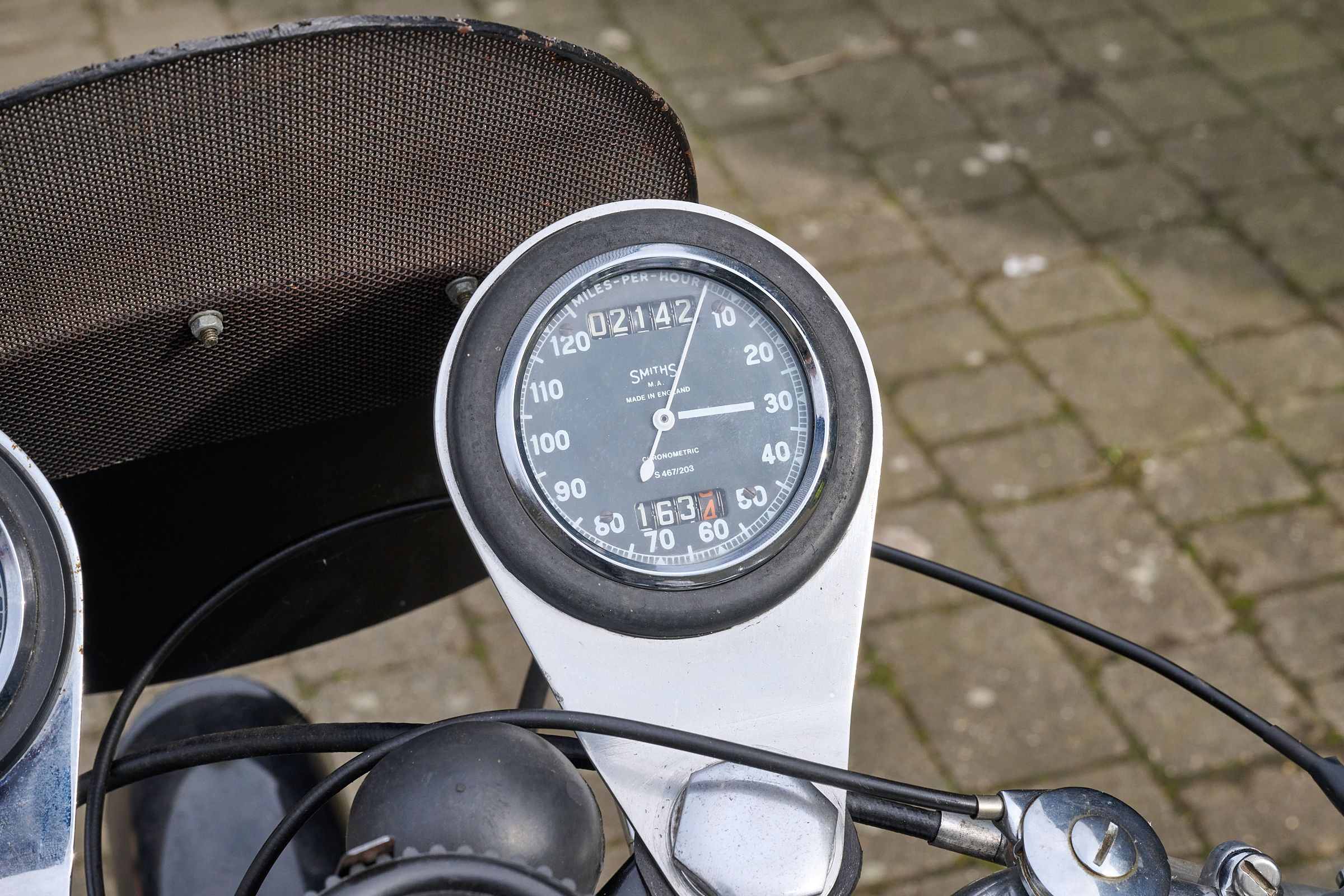 Les registres de châssis indiquent qu'il s'agit d'un modèle 30 du début de l'année 1950 avec le moteur révisé. Elle est dans un état resplendissant, sa belle peinture noire et argentée étant rehaussée par des bandes rouges soignées. Au cours des dernières années, elle a été utilisée avec parcimonie dans le cadre d'une vaste collection, sortie entre 2002 et 2004 pour des événements VMCC.
