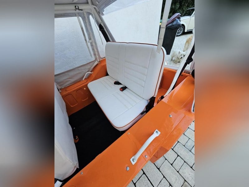 Interior – Originally, passenger seats, grab handles, heater, windscreen washer and a removable canvas top were optional. The Mk 1 Moke, as you see here, had a single windscreen wiper and in 1967, the "Mk 2" Moke added a passenger-side wiper. Horn and headlight controls were also later moved onto the indicator stalk. The optional cloth canopy is held up by a thin tubular structure that can easily be removed when not needed. It’s a simple interior, to say the least, with our example displaying bespoke alcantara beige cushion covers, with contrasting black/ beige piping foot-well mats. The steering wheel has been replaced to match the overall new appearance and we’ve added sensible and perfectly usable A-Post round mirrors. The overall finish is most likely better than when it left the Longbridge, Birmingham factory, so make no mistake this is the very best example available.