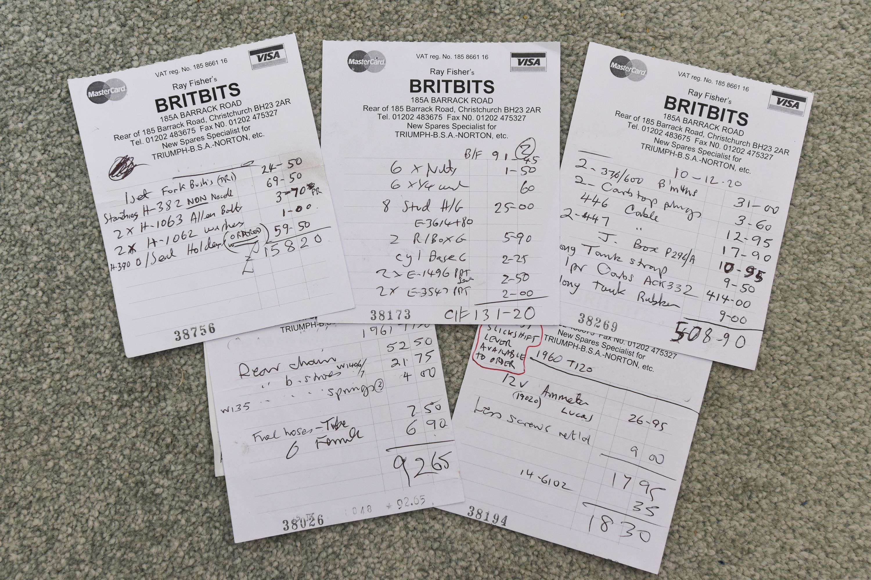 - Fatture per i ricambi e la ricostruzione del motore