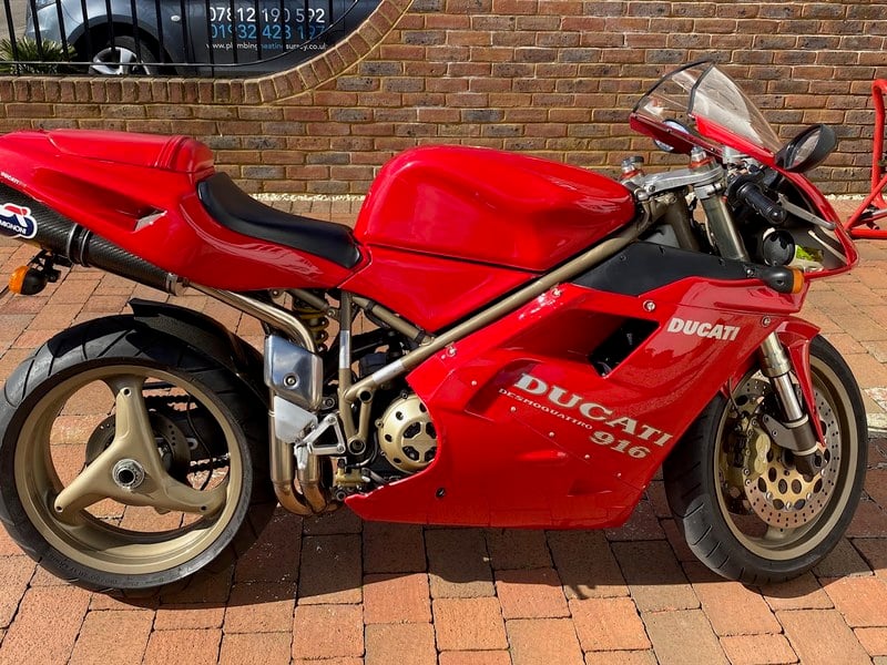 In condizioni impeccabili, una Ducati 916 del 1997. Chilometraggio molto basso: 6200 miglia, ovvero 10.000 km come riportato sul cruscotto. Modello UK...