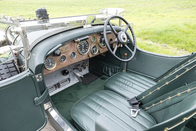 - Pièces d’époque authentiques incluant le capot de radiateur Bentley d’origine, les phares Zeiss et les instruments chronométriques Smiths/Jaeger