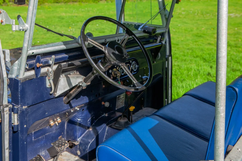 This particular left-hand drive example retains its original engine, gearbox and chassis, a remarkable trifecta for a vehicle of this age and provenance. It underwent a thorough restoration in 2017/2018, during which the chassis was stripped to bare metal and refinished; all steering joints were replaced; the brake system was overhauled; the body was stripped to bare metal and recoated in the original blue-black; and the vehicle was fully rewired. Since acquiring the vehicle in 2019, the current owner has had the gearbox refurbished by a Land Rover specialist, and a new dynamo was fitted in 2025.