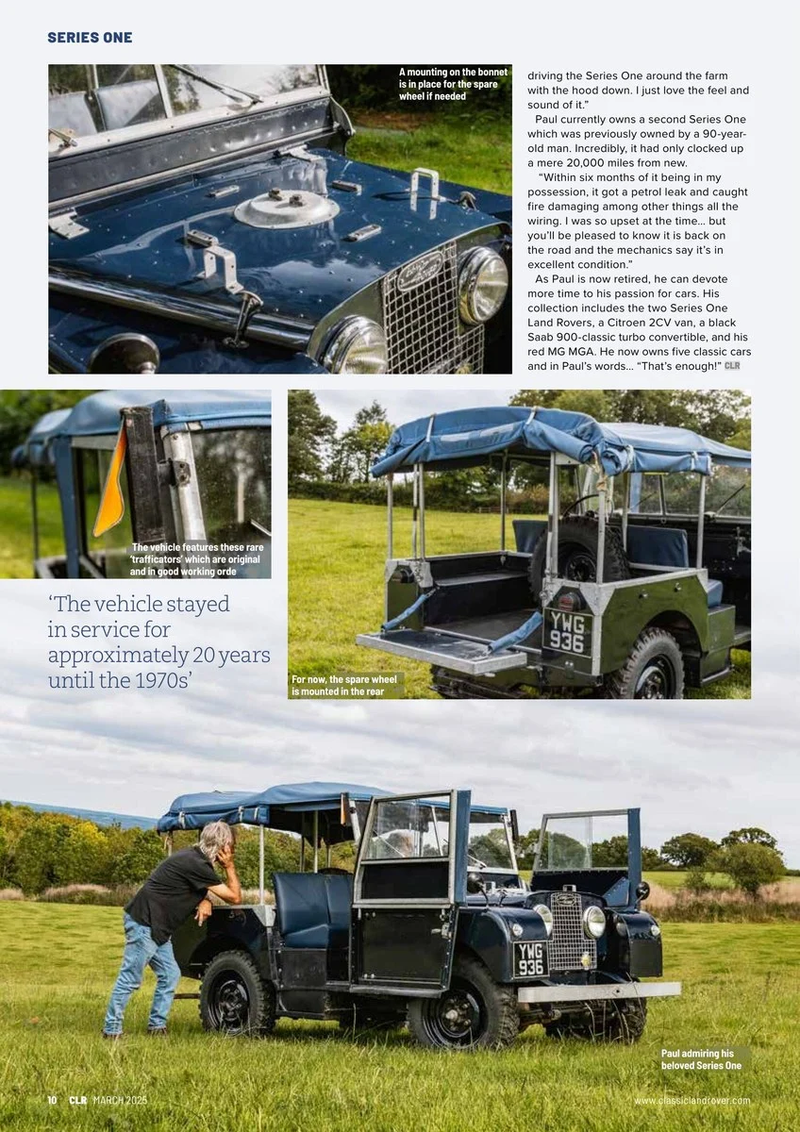 • Featured on the front cover of the March 2025 edition of Classic Land Rover magazine, with a detailed article describing the restoration work