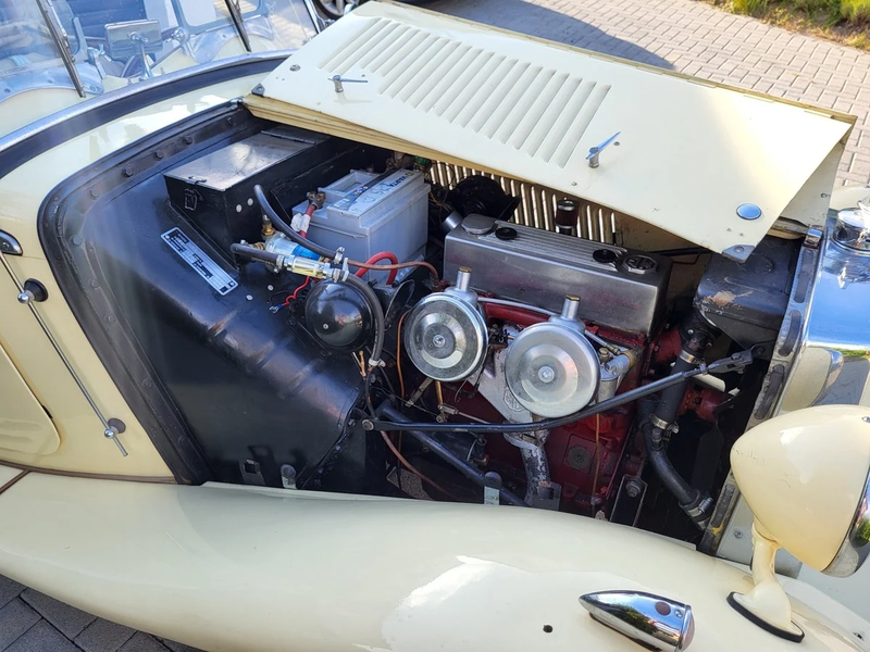 This 1953 car is a particularly solid one, that's never been welded and has been very nicely kept. Presented in an attractive ivory livery with a beige leather cabin, this TD retains a beautiful patina that showcases its authentic character while benefiting from comprehensive mechanical refurbishment. With matching numbers and documented maintenance history from TGA Oldtimer Centrum Aachen, this handsome TD ticks plenty of boxes.