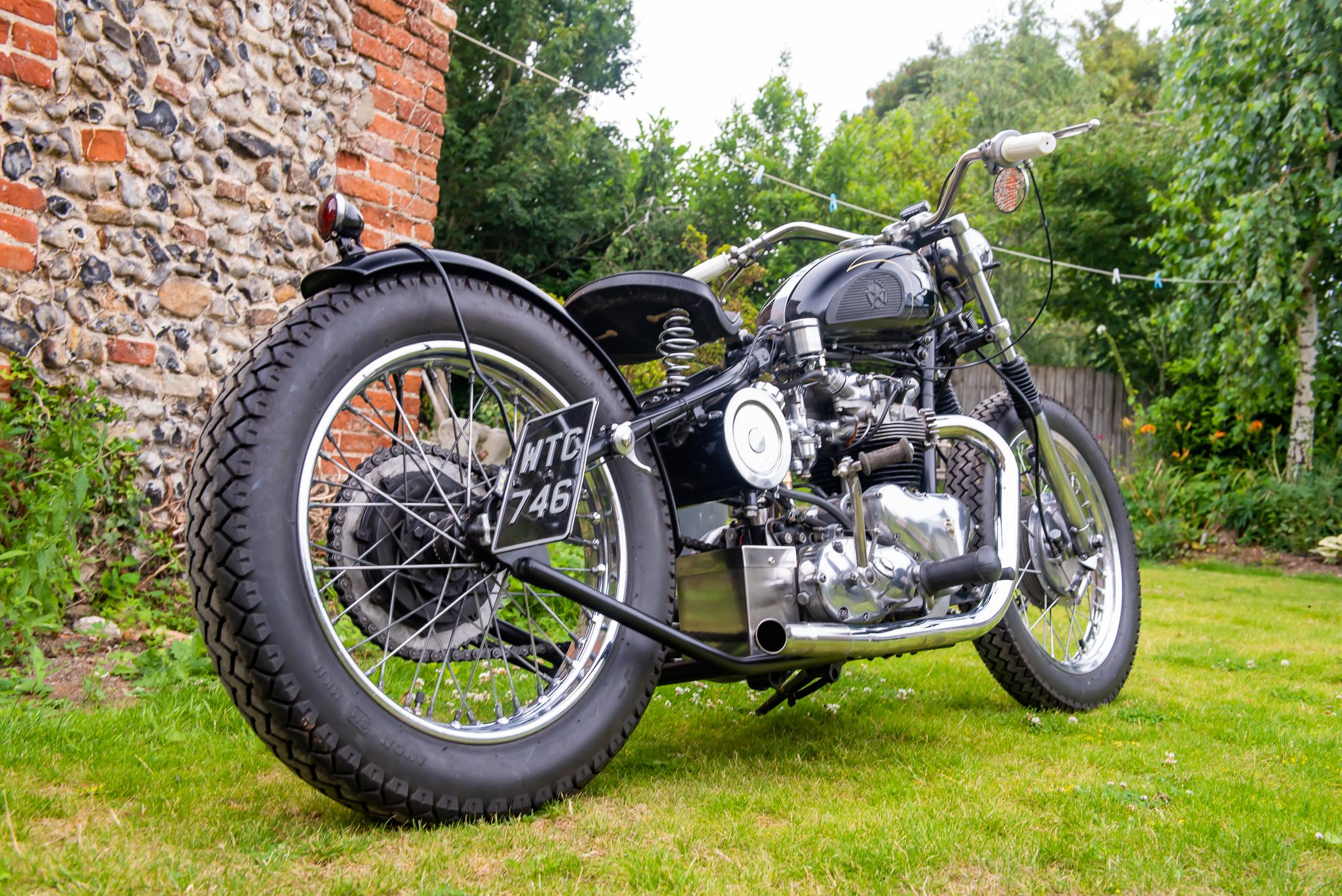 La moto achetée a été envoyée à Jack chez Jackson Motorcycles avec l'instruction de la transformer en un "bobber vraiment élégant et minimal". Il s'est avéré que peu d'éléments de la moto étaient d'origine, le cadre étant celui d'un speed twin de 1955 (vraisemblablement modifié pendant ses années de course, mais nous ne pouvons pas le confirmer). Encore une fois, c'est exactement ce que l'ancien propriétaire recherchait et cela correspond à l'esprit et à la pratique des conversions "bobber".