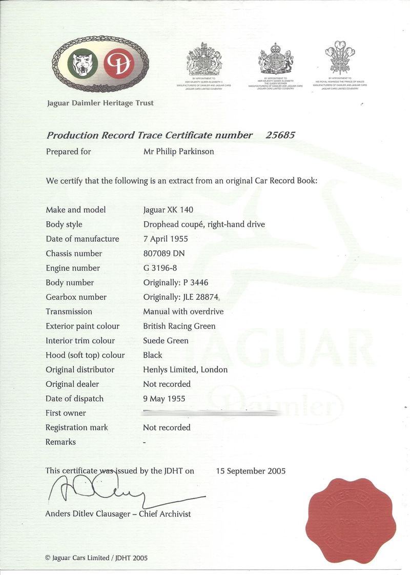 - Jaguar Heritage Certificate