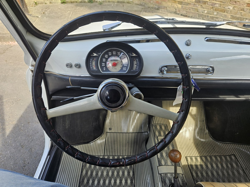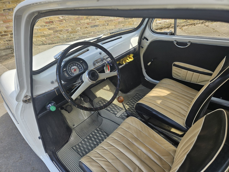 Nur wenige 600er in Großbritannien sind so gut erhalten und gepflegt wie dieser Wagen aus dem Jahr 1959. Er verfügt über die cleveren "Selbstmördertüren", die so groß sind, dass man den Rücksitz erreichen kann, ohne den Vordersitz zu verschieben. Der in Weiß lackierte Wagen entspricht weitgehend dem Werksstandard und befindet sich außen und im zweifarbigen Interieur in einem hervorragenden Zustand.