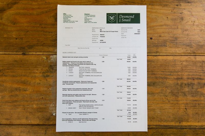 Accompanied by MGA register form, BMIHT certificate, 2021 invoice and V5C