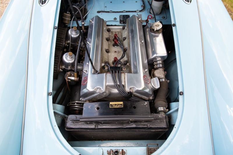 This particular example, presented in Iris Blue with black trim, was previously based in the dry, car-friendly climate of Australia. The car is believed to have been raced extensively here in period, adding a layer of competition provenance to its story.