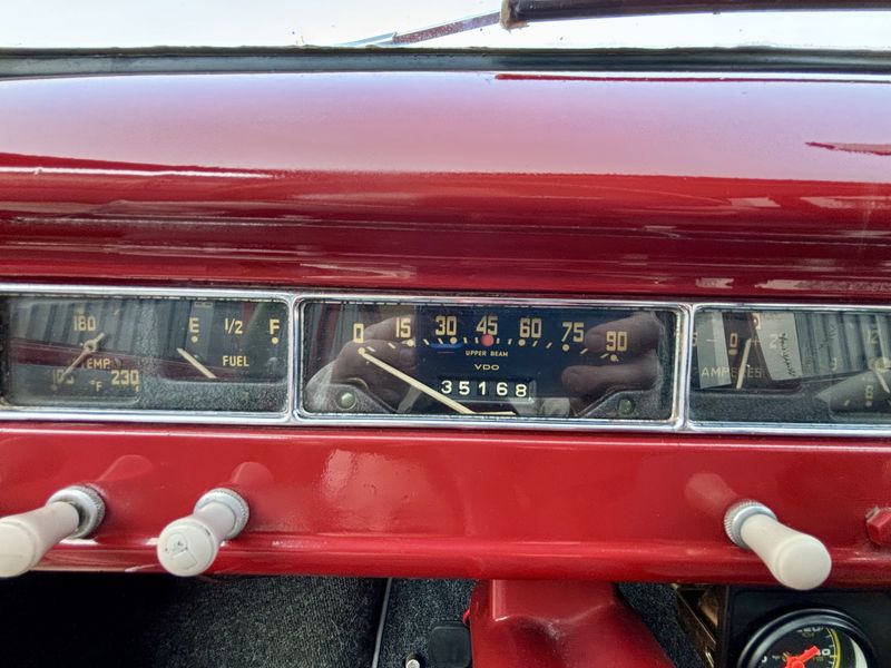 Beautifully presented in dark red but finished inside this time in grey vinyl, it is reported to be a very original and highly preserved car. The South African climate has played a part here, as the care of its keepers.