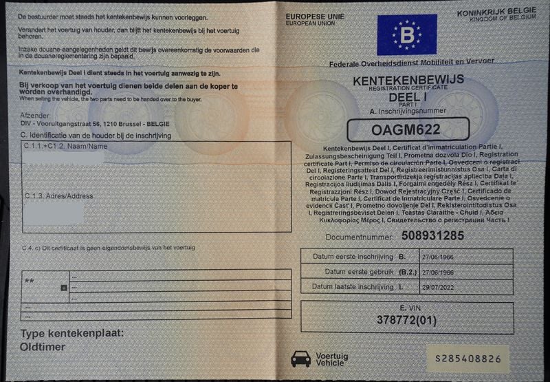 • Manufactured in 1964 and first registered on 27 June 1966