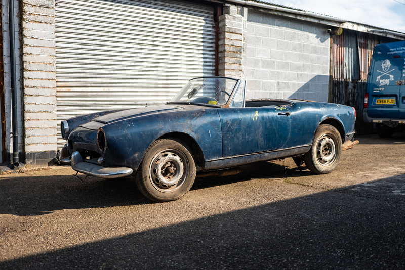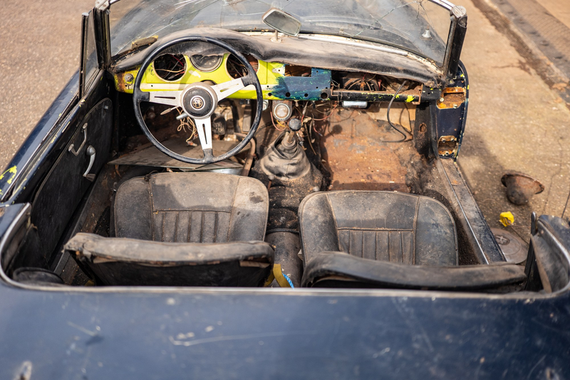 Come dimostrano le fotografie, questa Alfa Romeo Giulietta Spider richiede un po' di lavoro, anzi un bel po'. Ma offre un'opportunità interessante per chi è alla ricerca di un progetto di restauro completo.