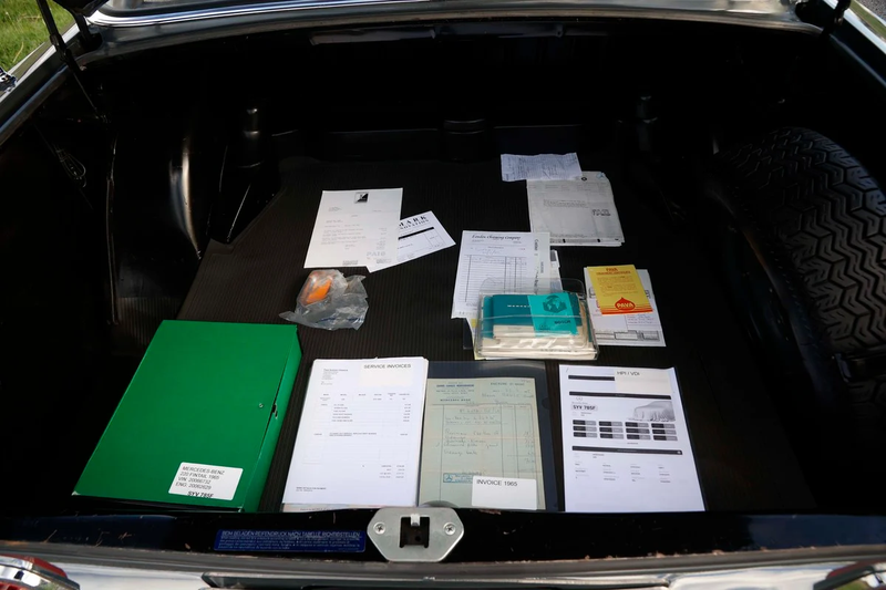The service history is comprehensive, proven with invoices. Indeed, it seems that only renowned specialists have ever worked on the car including John Haynes Mercedes, Nigel Cooper Restorations, Steve Redfearn Mercedes and Paul Sumner Classics. The oldest invoice dates from 1965 and the last only a few months ago.