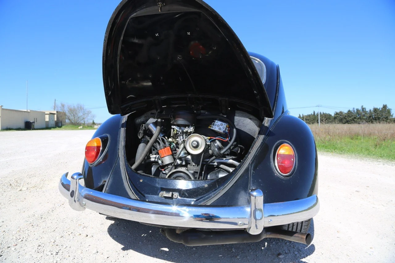 Comme en témoignent les photos, cette Coccinelle se présente très bien dans l’ensemble, avec une patine correspondant à son âge et quelques réparations historiques visibles. Les spécialistes de chez Slymotors ont réalisé ces modifications avec soin et professionnalisme. Il nous est indiqué qu’elle roule très bien, dispose d’un Contrôle Technique valide et est immatriculée en France avec une Carte Grise de Collection.