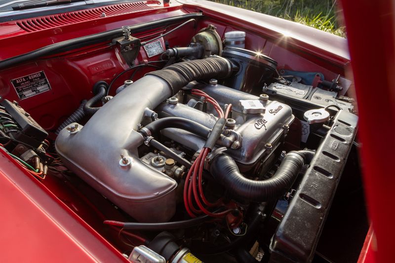 Questo esemplare del 1967 è equipaggiato con la versione da 1.600 cc del famoso motore bialbero Nord dell'Alfa ed è presentato in Rosso Alfa con interni neri. Esteticamente l'auto è in ottime condizioni, con dettagli come le ruote GTA dotate di pneumatici nuovi che ne aumentano il fascino visivo.