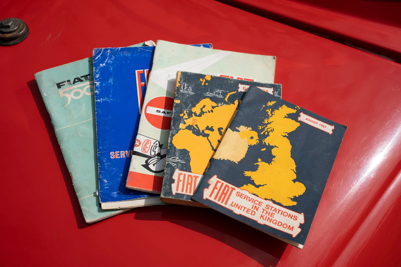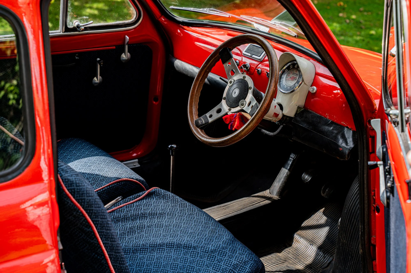 Jetzt ist er in leuchtendem Rot lackiert und trägt seinen Gebrauch wie ein Ehrenabzeichen. Wenn Sie diesen Wagen kaufen, geht es nicht nur um die fantastische Geschichte, sondern auch darum, einen 500er mit ovalem Zifferblatt in die Hände zu bekommen. Der Wagen kommt nach einer kürzlich durchgeführten Inspektion und Wartung auf den Markt. Dabei wurde unter anderem die Bremsflüssigkeit gewechselt, einige kleinere elektrische Probleme behoben und die Radlager eingestellt. Die Schweißarbeiten wurden im Jahr 2023 durchgeführt.