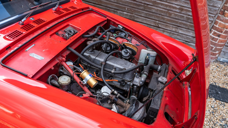 The car was restored some years ago, including a switch from green to what DVLA describes as red but appears to be ‘Carnival Red.’ The body and interior remain in good order, being at the smart and usable end of the scale rather than concours. In 2023, it received a mechanical overhaul that is detailed in the photos and included a new clutch, master, and slave cylinders.