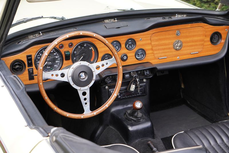 This pretty Jasmine Yellow TR250 is likely one of the last built, a 1968 car that retains its correct badging and nose stripe and has had just four keepers in its 58 years. Its current enthusiast keeper acquired it in 2014 and has looked after it well, as you can see in the photos, including always dry storing it in a garage. It has been used for various classic car rallies and features thoughtful additions like mechanical Aifab cruise control and a new Kenwood audio system. The soft top is reported to be watertight, and a tonneau cover is also included.