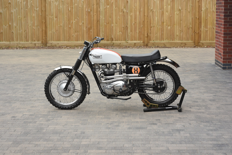 - TR6C (Competition) model with folding foot pegs and frame guard