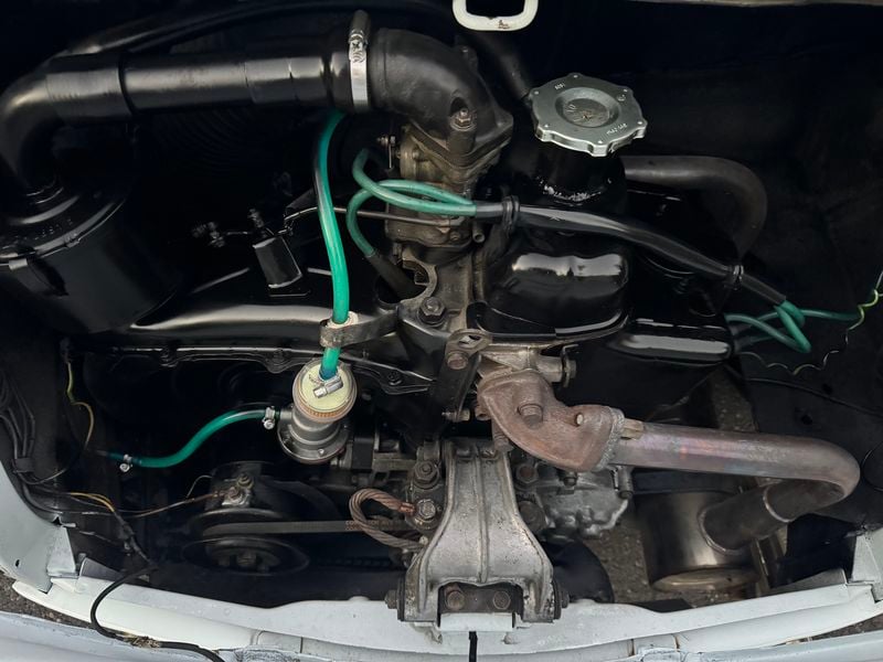 A intervenção mecânica é tão recente que o carro ainda precisa de se adaptar ao uso. Dizem-nos que este veículo com três proprietários foi restaurado há três anos. Segundo relatos, tem estado guardado na garagem desde a conclusão. Apresenta-se muito bem na clássica combinação Bianco sobre Nero.