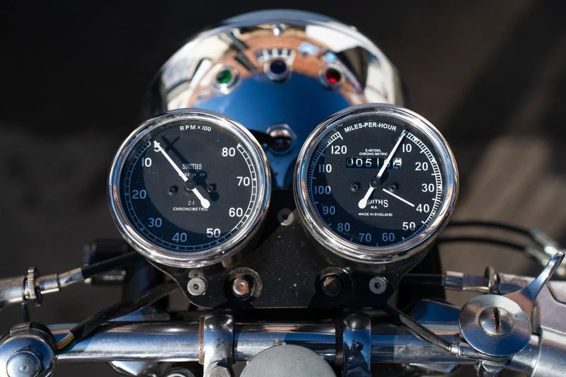"Um excelente exemplo geral deste twin clássico raro e altamente valorizado. Recentemente totalmente revisto por um restauro profissional, incluindo uma revisão de topo e desculação. Os carburadores foram limpos, e foi instalada uma nova bateria, comandos de guiador e filtros/caixas de ar. Uma máquina de funcionamento excelente e bem apresentada, que arranca facilmente, funciona fortemente e representa uma peça cada vez mais cobiçada da herança da motorística britânica."