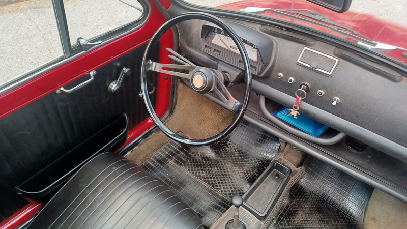 Dieses besondere Exemplar aus dem Jahr 1971, das in Medium Red lackiert ist, wurde 2003 komplett restauriert und hatte nur zwei Vorbesitzer, von denen der zweite das Fahrzeug fast zwei Jahrzehnte lang sorgfältig gepflegt und erhalten hat. Es handelt sich um ein authentisches und perfekt funktionierendes Auto, das sicher jeden Liebhaber begeistern wird.