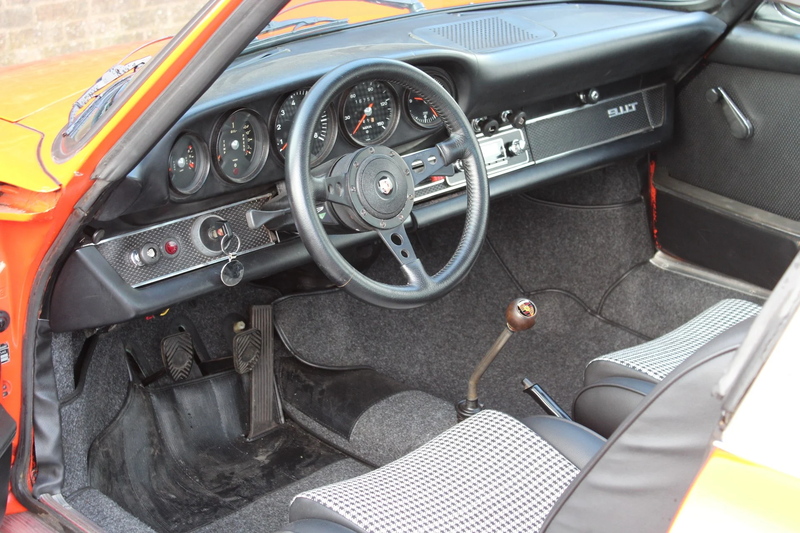 This particular 911 is the entry-level T, featuring the 2.2-litre engine synonymous with D-series models and capped by that coveted Targa roof panel. Manufactured in left-hand drive form, this car was imported into the UK in 1990 and has been with its most recent owner since January 1991. In late 2023, it was mechanically overhauled at a cost of over £6,500. Its period Fuchs wheels are shod in Falken and Goodyear tyres, while the diligently restored orange paintwork is broken up with a single driver’s door mirror and a black vinyl-trimmed roof.