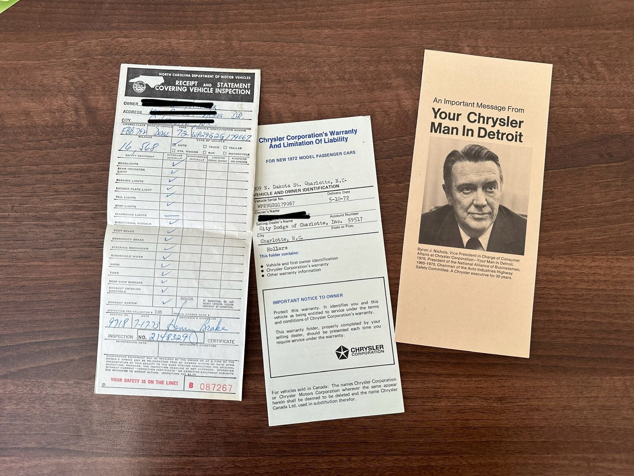 - 1972 bill of sale and dealer paperwork