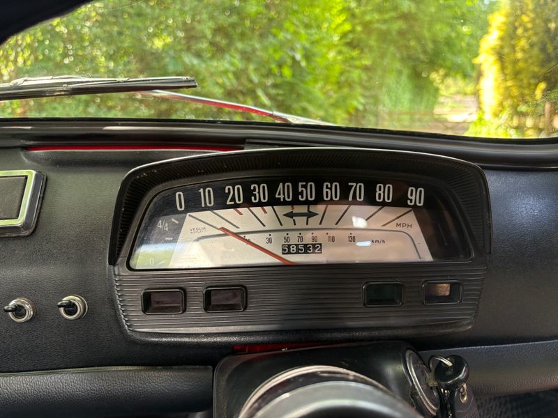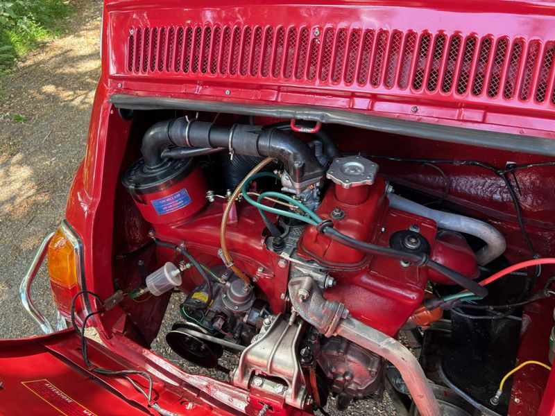 "On m'a dit que la voiture avait été entièrement reconstruite il y a 5-6 années avec beaucoup de nouvelles pièces. Certaines pièces visibles sont les nouveaux amortisseurs, les ressorts, les freins, le nouveau carburateur, les housses de sièges, le toit. Elle est en très bon état et peut être utilisée quotidiennement. La conduite est souple et tout fonctionne comme prévu."