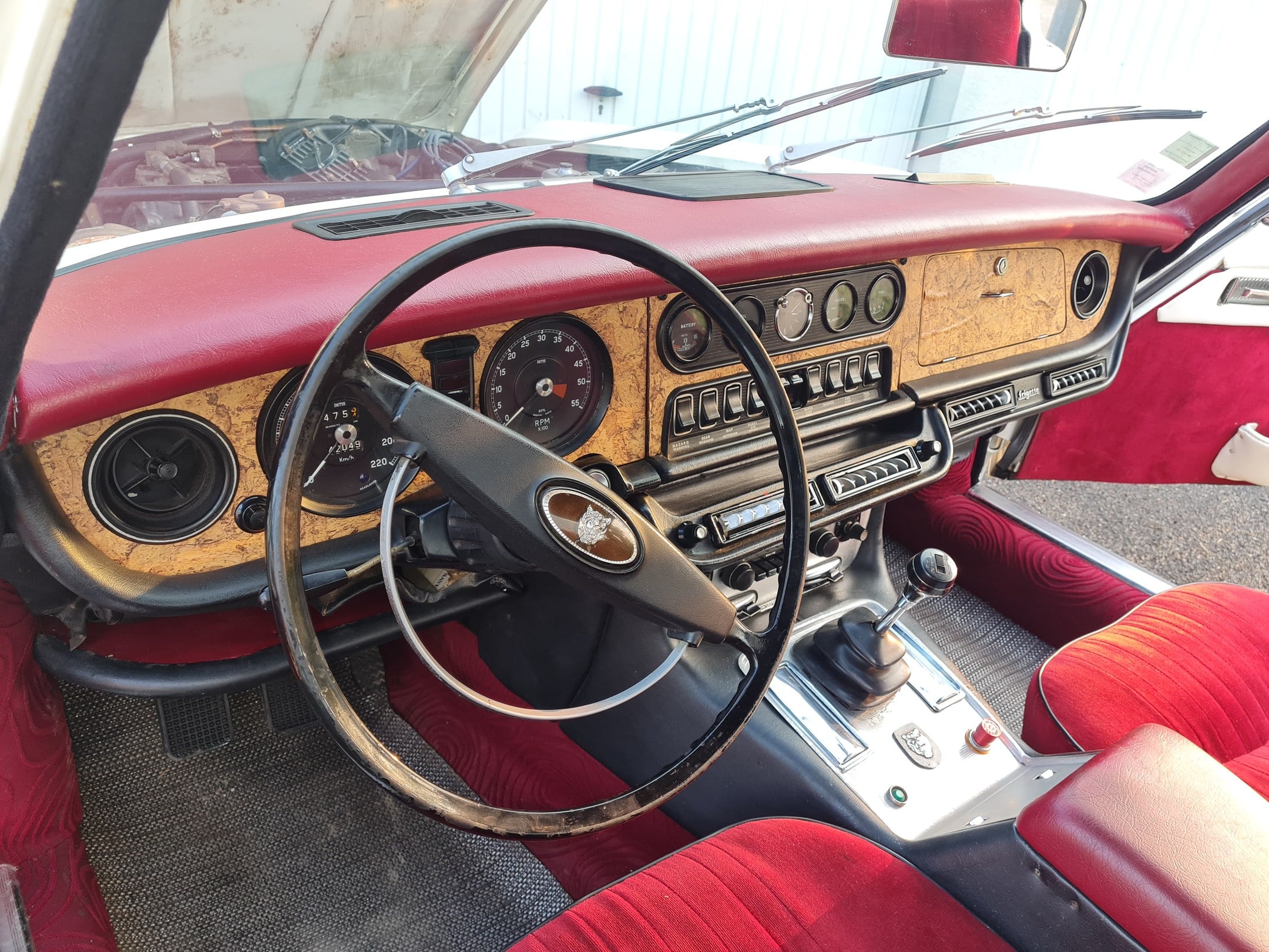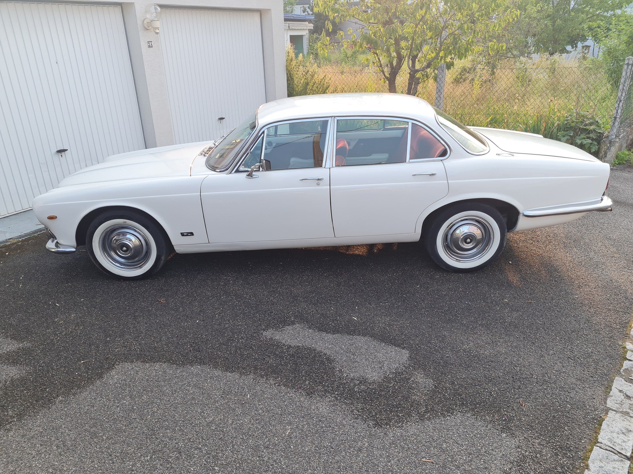 This XJ6 SWB 4.2, built in 1972 and registered in 1973, has a manual gearbox with overdrive and is finished in an attractive white colour with red velvet interior. This is a car with very few miles on the odometer and it presents a most delightful appearance. The condition is very good and the service history is a guarantee of a reliable car in perfect condition.