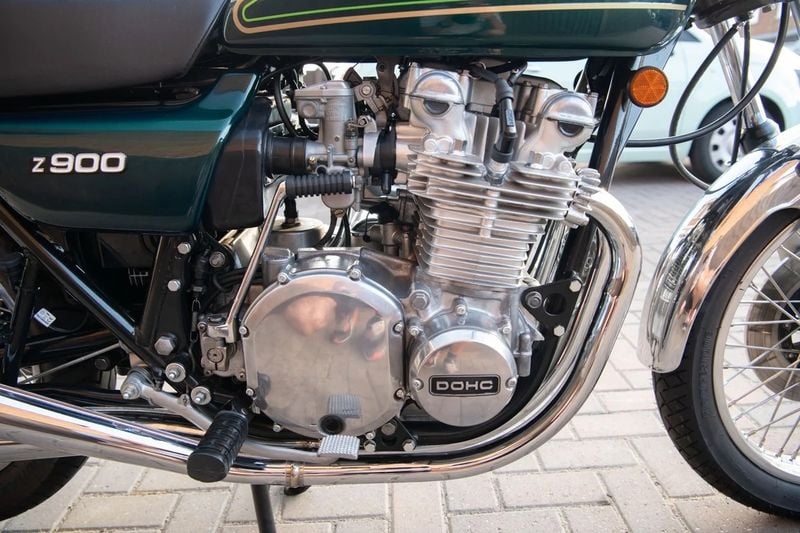 All of which makes the Z900 collectable and very usable. This 1977 example arrived in the UK in 2015 and has been extensively restored to factory standard specification. The extensive chrome brightwork and smart dark green metallic tank are all in good order. It features may factory-correct details such as the ND dials and Takasago rims.
