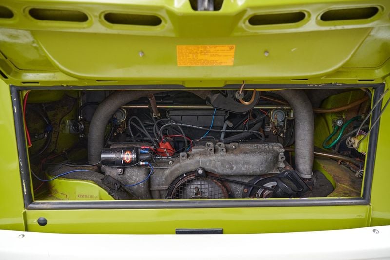 Direkt über der Hinterachse sitzt der Boxermotor, der Berichten zufolge in den 1990ern in Australien vollständig überholt wurde. Tatsächlich deuten Unterlagen darauf hin, dass er vor dem Import nach Großbritannien überholt wurde.
