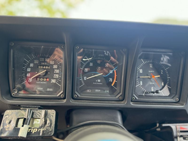 • Driving position is low and sporty, typically Alfa, with a small racing steering wheel and bucket seats all of which appear in superb order