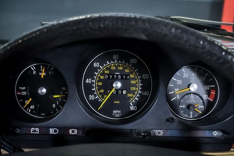 As the photographs show, this SL presents exceedingly well and is resplendent in a fetching colour combination that you don't often see. We're informed that the 77,514 miles are accurate and that the car is matching numbers.
