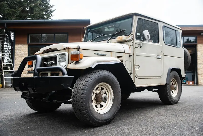 - Original and unrestored BJ40 in beige with evident paint fade and ageing