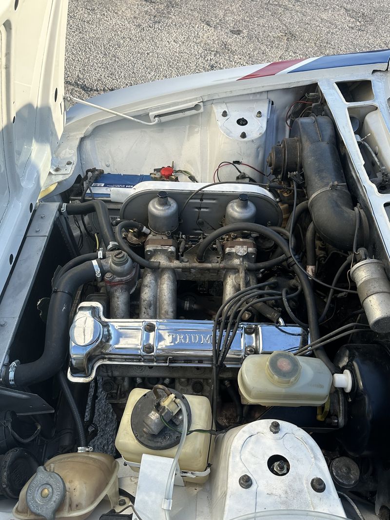 This car's provenance is notable: it remained with the same family from new until 2023. Beneath the skin, it has received significant mechanical attention, with details listed below. The exterior has been professionally finished in triple paint to recreate the white, red and blue Vernaeve livery, with decals applied by a specialist. The vendor states the car looks and drives very well, and it presents an opportunity to enjoy a piece of Triumph rally history on the road.