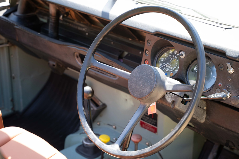 Un examen des nombreuses photographies révèle que cette Série III est un bel exemple de la marque, avec un châssis magnifiquement présenté et parfaitement protégé contre la corrosion sous cette carrosserie " Birmabright " richement usée par le temps. Avec son Defender 2.5NA diesel de l'armée singapourienne qui n'aurait parcouru que 14 000 miles, cette Série III a été modifiée avec soin tout en conservant son caractère authentique. Parmi les autres modifications discrètes, citons la sellerie tan et les jantes en acier peintes en noir, qui conviennent vraiment à l'esthétique.