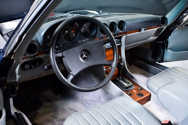 La Mercedes-Benz R107 SL è ampiamente considerata una delle cabriolet più eleganti e ben progettate della sua epoca, con la 380SL che raggiunge il perfetto punto di equilibrio tra prestazioni e lusso. Questo particolare esemplare del 1983 si distingue per l'ambita livrea Midnight Blue (904), abbinata agli interni in pelle grigia, una combinazione sofisticata che sottolinea il design senza tempo della R107.