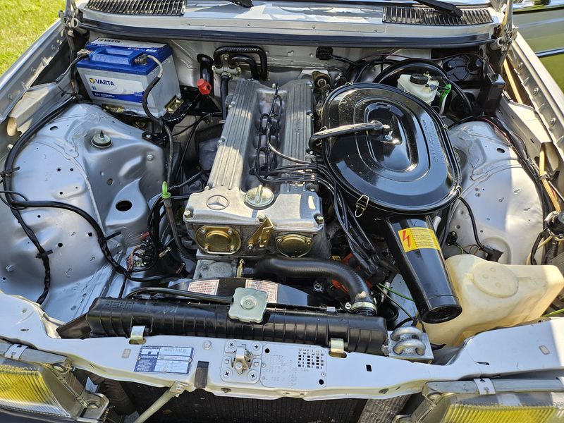 Celle que vous voulez est cette voiture, la 280CE avec le moteur six cylindres en ligne de 185 ch à injection, associé à une boîte automatique 4G-TRONIC rassurante. Cette voiture arrive sur le marché avec un investissement mécanique important, incluant une reconstruction du moteur par un spécialiste de la marque coûtant plus de 11 000 €. D’autres travaux ont inclus des révisions des freins, de la suspension, de l’injection et du système d’allumage. On peut voir à quel point ce travail est frais sur les photos. On nous dit que la voiture n’a parcouru que 2 000 km depuis son achèvement.