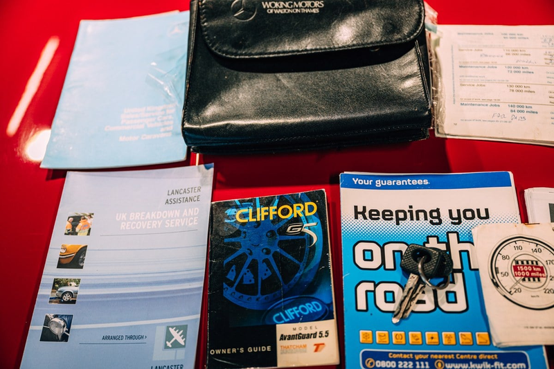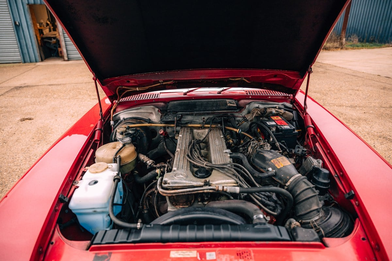 This Signal Red R107 is fitted with the 2.8L M110 straight six motor. It’s a good choice because at 185bhp it’s usefully powerful, yet offers decent real-world economy for those aforementioned trips. It is in good condition, particularly the smart beige MB Tex cabin, and benefits from lots of recent work, including welding repairs.