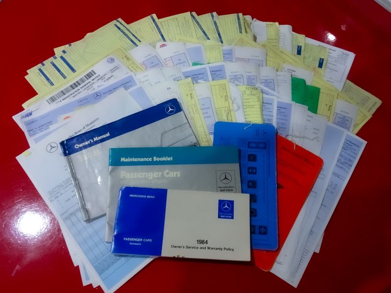 Questo esemplare del 1984, rifinito in Silver Blue Metallic con capote Dark Blue, è corredato da un'impressionante documentazione che i collezionisti seri apprezzeranno. Con una storia di manutenzione completa supportata da circa 18.000 sterline di fatture e un Carfax pulito che mostra 22 documenti di servizio, questa 380SL dimostra un livello di cura che la distingue da molte altre sul mercato.