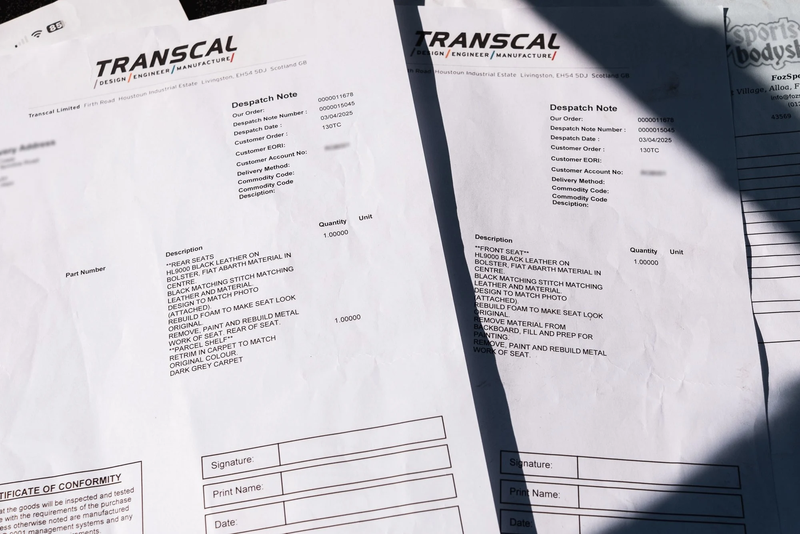 VerkoperHet stuur is opnieuw bekleed en met Italiaanse gekleurde draad genaaid; het ziet er geweldig uit.\nOok de stoelen zien er fantastisch uit, beter dan nieuw.