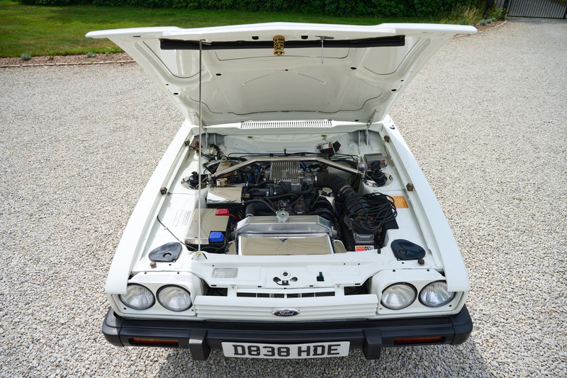 Le vendeur affirme ne pas être un passionné de la Capri, et a donc parcouru très peu de kilomètres depuis la fin des travaux, préférant stocker soigneusement la voiture dans un Carcoon. Cela a permis de préserver l'état de la voiture, la peinture blanc diamant étant particulièrement bien mise en valeur. L'intérieur Recaro en cuir et tissu gris est en grande partie d'origine et ne présente qu'une légère usure en rapport avec le faible kilométrage affiché.