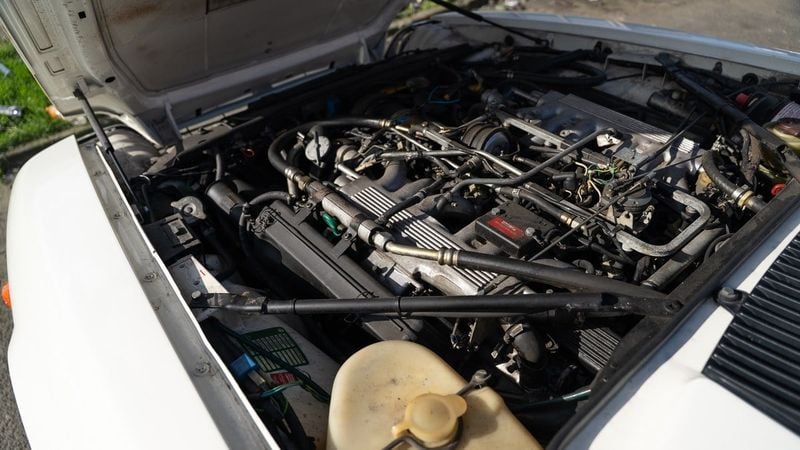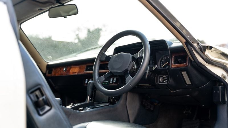 Dit 1986-model wordt gepresenteerd als een echt door TWR aangepaste XJ-S, afgewerkt in wit en uitgerust met het volledige TWR-bodykit met voor- en achtersbumpers, zijskirts en een achtervleugel. Onder de motorkap ademt de 5.343cc V12 via TWR’s eigen luchtfilterbehuizingen, wat een karakteristieke inlaatlawa geeft, aangevuld met een sportiever uitlaatsysteem.