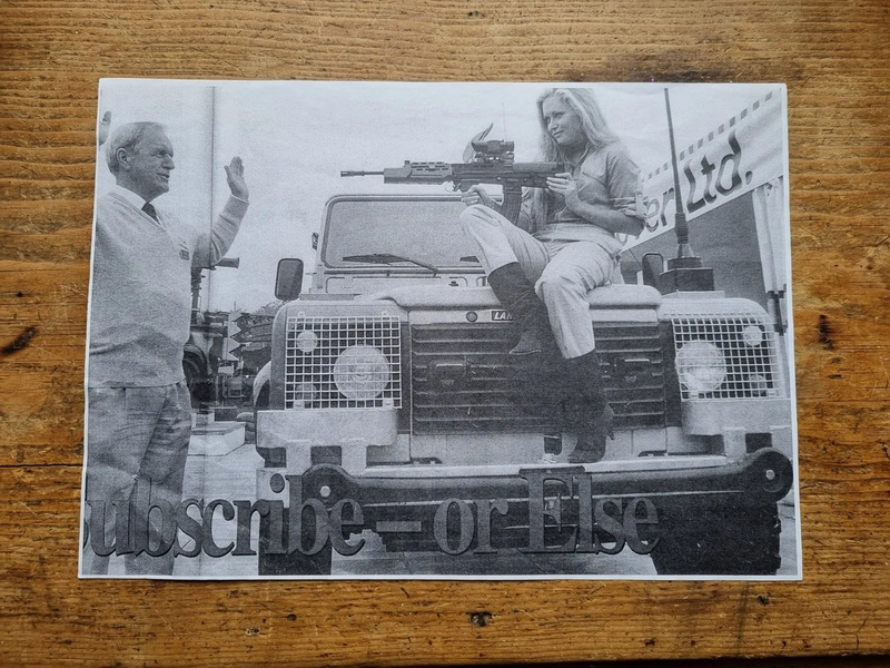 Der Verkäufer verfügt über das Werksdatenblatt und eine Sammlung von Fotos aus der Zeit, darunter ein Foto vom Land Rover-Stand auf einer Waffenmesse, auf dem eine Dame ein SA80-Sturmgewehr zur Schau stellt!image.png4.17 MB