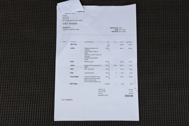L'habitacle est bien présenté dans l'ensemble, avec les sièges clairement utilisés mais pas abusés, et le tableau de bord qui donne toutes les vibrations de vaisseau spatial que l'on peut attendre d'une Porsche des années 80. Le kilométrage est d'un peu plus de 105k - ce n'est donc pas une voiture pour votre collection de garage hermétiquement fermée, mais plutôt une voiture à apprécier. Le compartiment moteur est remarquablement propre, la voiture roule et tous les documents sont là. Il y a de la corrosion visible sur le dessous, et la peinture commence à rendre l'âme à un ou deux endroits, mais les fondamentaux sont présents et corrects.