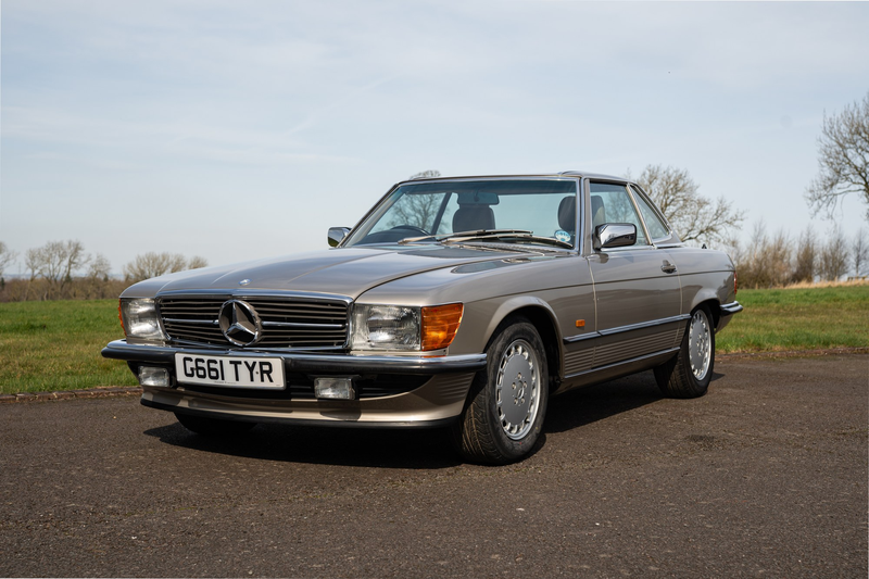Dopo diciotto anni di grandi vendite, la produzione della R107 terminò nell'agosto 1989, quando le ultime SL ottennero il prefisso "G" nel Regno Unito. Questa 300 SL "Smoke Silver", straordinariamente originale, è una di queste ultime, iscritta per la prima volta il 2 agosto 1989. A tre anni di età, l'auto è stata acquistata dai coniugi Whitfield, che sono gli ultimi detentori sulla carta di circolazione. La loro azienda, la Whitfield Machinery Limited, provvedeva alla manutenzione dell'auto, così come la Cragside Mercedes-Benz di Newcastle, per la quale esistono diversi timbri di manutenzione degli anni '90. Ad oggi, ha percorso solo 48.971 miglia.