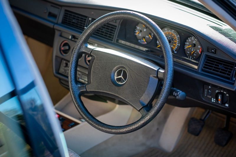 That all makes this 1989 190E a car to relish. It’s one of the desirable 2L fuel injected cars with 120bhp mated to a manual box. Painted handsome ‘blue black’ with a contrasting beige fabric checked interior, it is a fantastically preserved and highly original car. It has only covered 36,311 miles from new, which is supported by MOT history and servicing records. It’s been in the same family from new - passing to the current keeper in 2024.
