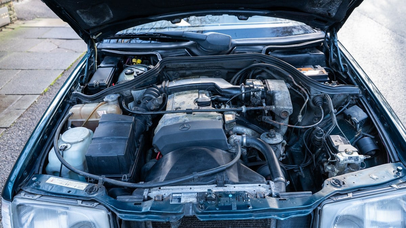Dieses Beispiel aus dem Jahr 1995 ist die seltene und begehrte Sportline-Variante, die eine tiefergelegte Fahrhöhe (ca. 20 mm), festere Federn/Dämpfer, ein schnelleres Lenkgetriebe und ein kleineres, speziell Sportline-bedrucktes Lederlenkrad aufweist. Es handelt sich um einen 2,2-Liter-Vierzylinder-E220, der etwa 150 PS leistet, eine Höchstgeschwindigkeit von 128 mph erreicht und 0-62 mph in rund 12 Sekunden erledigt.