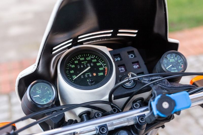 With two well-presented original panniers flanking a seat which exhibits the minimal signs of wear you’d expect from such a low-mileage bike, this particular Kalahari is an exceptional opportunity to purchase a piece of biking history. A rev counter and voltmeter flank a speedometer redlined at 200kph (this particular bike was imported from Hong Kong in 2023 and given UK plates, having spent its early years in its home country of Germany), ahead of immaculate white paintwork reprised in those unusual handlebar deflectors, while its authenticity as a true Kalahari is confirmed by verified frame and engine numbers.